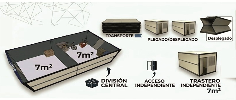 Su diseño plegable reduce drásticamente los costes logísticos, permitiendo un almacenamiento compacto fuera de temporada