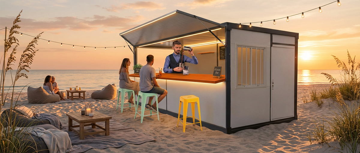 Ideal para churrerías, bares de piscina, puntos de venta de tickets o food trucks estáticos.