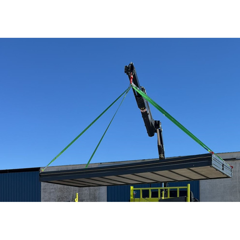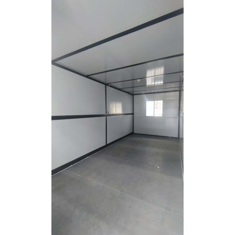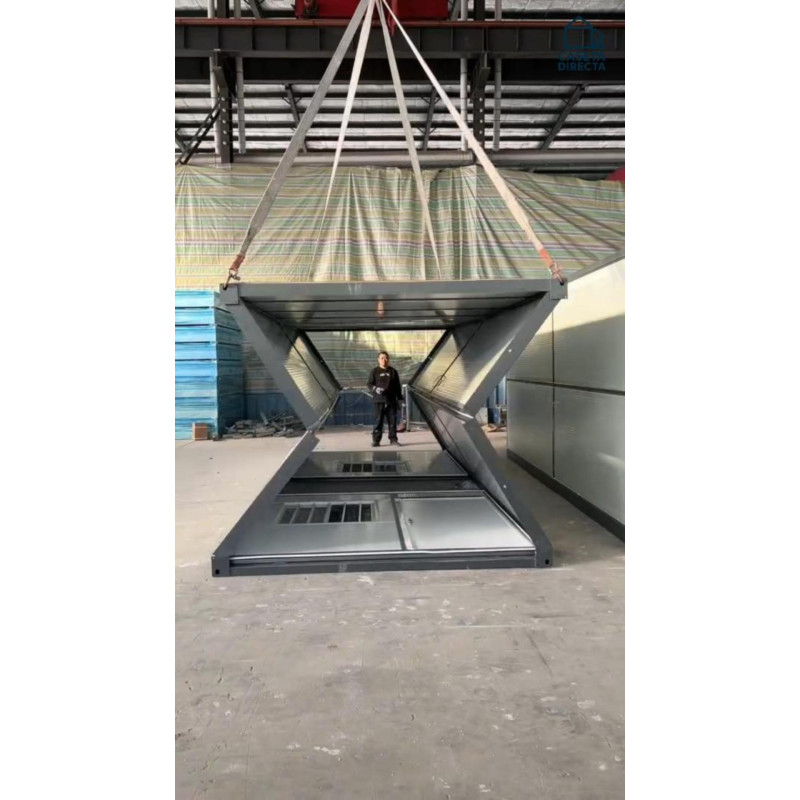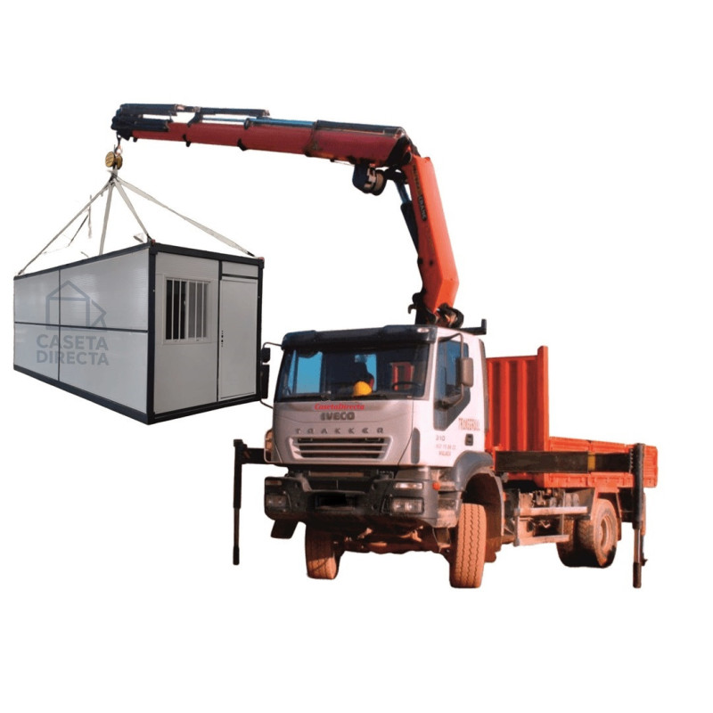 Su diseño compacto permite transporte eficiente. Se pliega hasta 32 cm y pueden cargarse 14 unidades en un contenedor de 40 pies. Es ideal como caseta u oficina de obra, vivienda temporal o caseta portátil técnica, trastero..