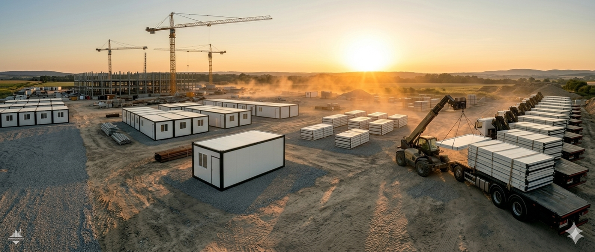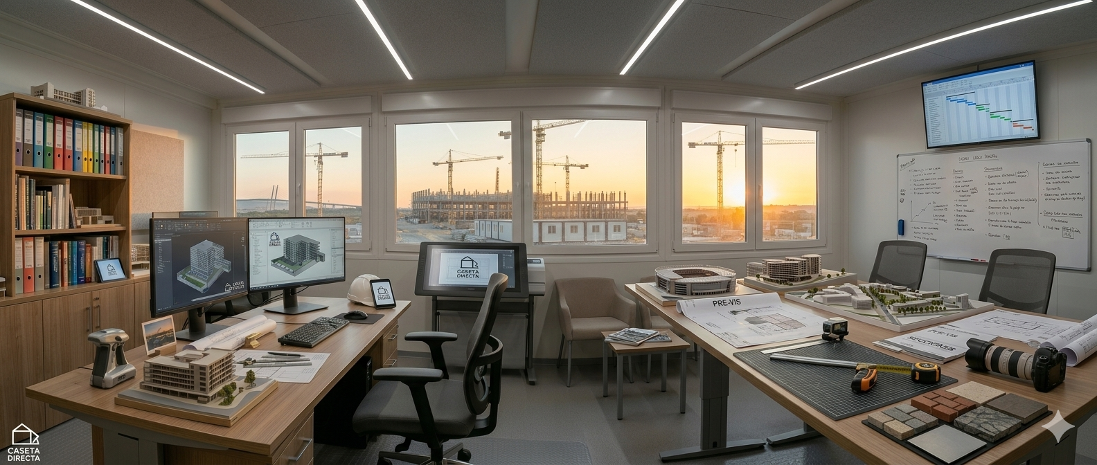 - Ideal como: Oficinas de obra, vestuarios o módulos auxiliares en proyectos de construcción.